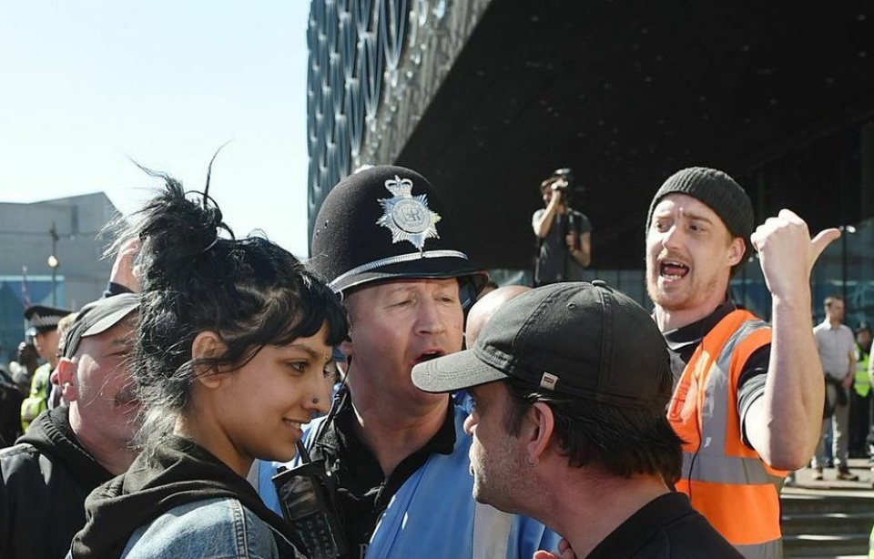 C'était le week-en dernier à Birmingham (Royaume pour peu de temps encore Uni), comme à Borlange (Royaume de Suède) l'an dernier : une femme, par sa seule présence, défiait un cortège de nazionationalistes. Nordic Resistance Movement (NDM), English Defence Leage (EDL) : immer derselbe Kampf...